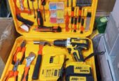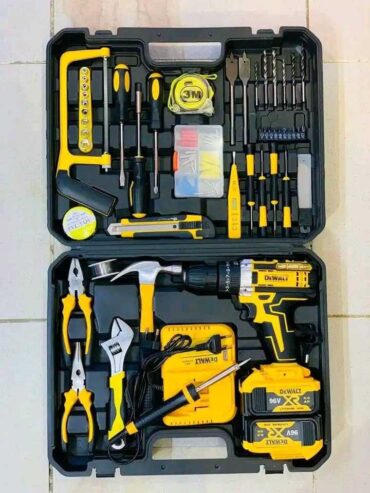 اصلي ډیولت آمریکایی دوه غټ 96w بټری والا برمه ټول مکمل سامان لکه چکوش،پلاس کاوه، میګر، اچار فرانسه او نور مختلف سامانونه.